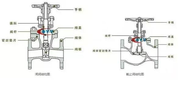 截止閥的密封面是閥心的一個小梯形側面(具體看閥心的形狀),一旦閥心脫落,相當于閥門關閉(如果壓差大,當然關不嚴,不過止逆效果還不錯),閘閥是靠閥心閘板的側面來密封,密封效果不如截止閥,閥心脫落也不會像截止閥那樣相當于閥門關閉。